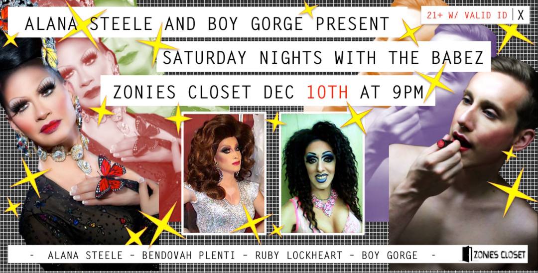 Bendovah returns to Zonies Closet for Alana Steele & Boy Gorge Present Saturday Nights with the Babez! This is Bendovah’s first appearance at Zonies since August, so don’t miss it!